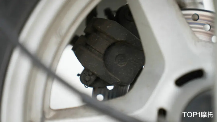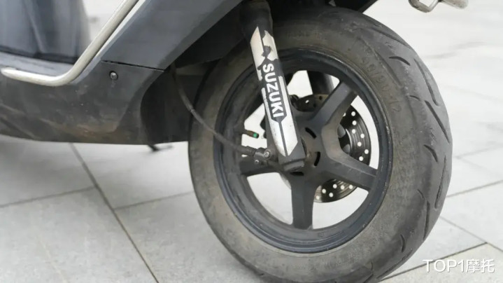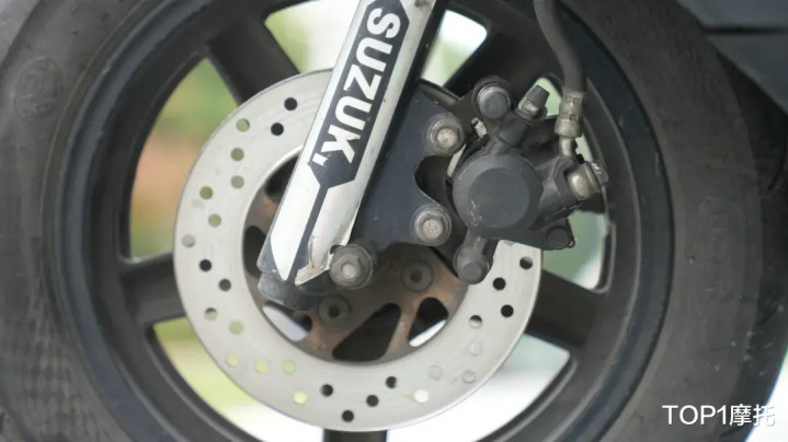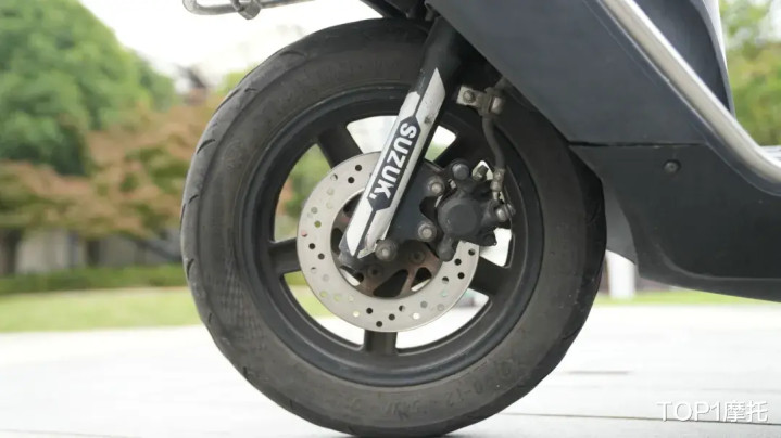 行走系统部分,这台铃木UU125的轮胎早已不是原厂胎,毕竟没有什么轮胎能够扛得住27万公里的行驶里程;前后减震也相当的干净,无漏油渗油的迹象,减震功能也都正常,前后刹车同样有十分明显的损耗。