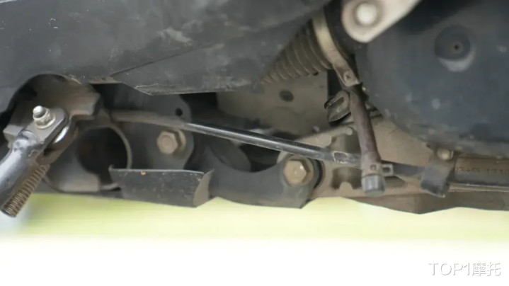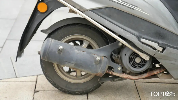 排气管的锈蚀比较明显,毕竟8年的风里来雨里去,也没有补漆维护过,但是没有漏气的状况,而且排气管的防烫罩都没了,这也会进一步加剧排气管锈蚀的进程;发动机底下没有第一名的车那么干净,相较于日常在城市里送餐的外卖使用场景,这台UU125更多的是在摩旅路上,在各种复杂路况下使用,所以成色和状态的战损痕迹更明显。丨冠军/季军-铃木UU125试驾