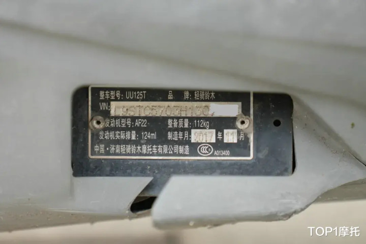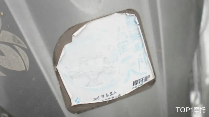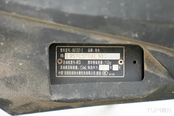 尾箱经过多年的磨损有非常明显的掉色,这也是经常摩旅使用过的痕迹,毕竟日常使用的话,尾箱顶上是不会产生这种痕迹。车身铭牌上的制造时间清晰可见,无论外观经过多大的改变,铭牌就像身份证一样,能验明车辆的真身。