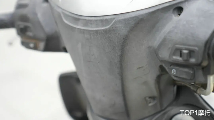 黑色的外观覆盖件,经历长久风吹日晒雨淋和磨损之后,已经有明显褪色变色的情况,就像是人类老了之后的皮肤失去了原本的光泽。尤其是车把按键的老化已经非常明显,甚至转向灯按键上面的位置,都已经磨的发光发亮了,但是按键功能一切正常可靠性相当高。