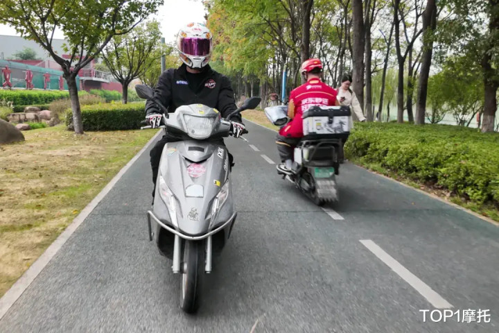 好巧不巧的是,在骑着外卖小哥的铃木UU125在试驾的过程当中,刚好碰到正在送餐骑着电动车的美团小哥,电摩踏板和燃油踏板的碰撞在这一刻有了结果。对于铃木UU125来说行驶几十万公里不在话下,但是对于电摩来说想要达到这么长的行驶里程难上加难。
