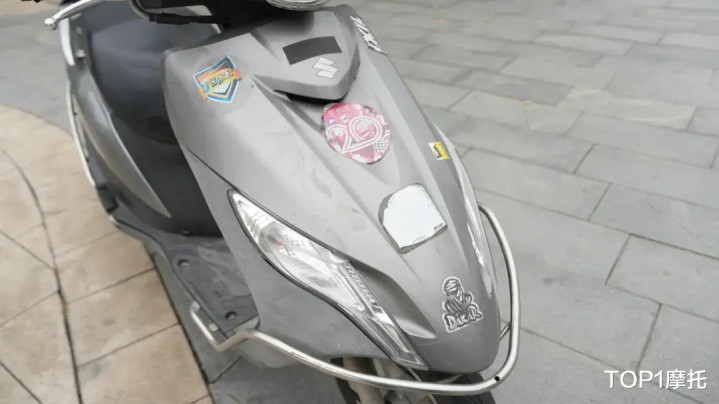 年份更长的这台铃木UU125,明显要更显老一些,8年的岁月洗礼在这台车的外观上,留下了难以磨灭的痕迹,车身上的贴纸也都褪去了本来光鲜的颜色,不过有漆面的外观覆盖件光泽度保持的还不错,但是大灯早已失去了新车的那种光泽清透。