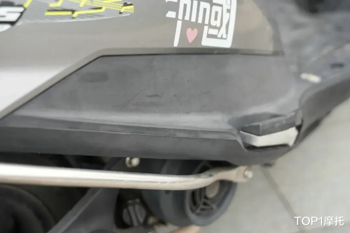 这台铃木UU125外观覆盖件的黑色零部件,经过风吹日晒雨淋之后,有褪色泛白的情况,不过从车身外观接缝开裂的情况判断,这台UU125或多或少经历过倒车或者摔车的情况,而这些都是一台车经历过多年使用的正常痕迹。